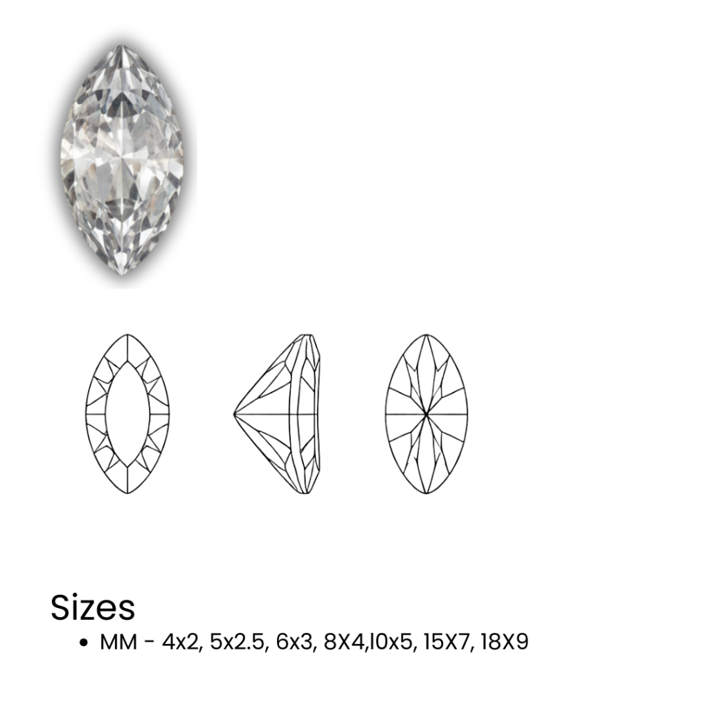 Discover our collection of high-quality fancy crystal stones available in various shapes and designs. Perfect for jewelry making, garment embellishments, accessories, and luxury fashion creations.